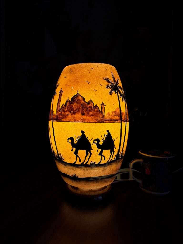 Handmade Painted Camel Skin Lamps from Multan are made by hand using traditional methods and do not require machines. Camel skin lamps are a small piece of desert crafted from dried skin of camel in deserts of Cholistan and Multan and then painted(NAQASHI) over to create a unique craft not found anywhere else in the world. So why not add some color to your life by purchasing one of these beautifully painted camel skin lamps from Multan? These beautiful lamps are stunning whether they are lit or unlit and make an excellent decorative piece for any home or office! You can find our outlet at Multan Handicrafts Shop no. 14 Cantt CSD Plaza Multan, or you can order online from our Website: https://multanhandicrafts.com/ further you can check our Instagram: https://www.instagram.com/multan_handicrafts/ and Facebook: https://www.facebook.com/multanhandicraft
